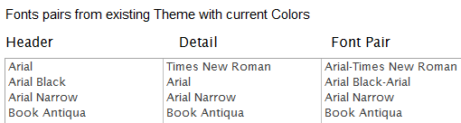 The names of the Header and Footer fonts are shown in the relevant fonts. There is an indication whether fonts are Themed or not. (See Fonts below for more detail)